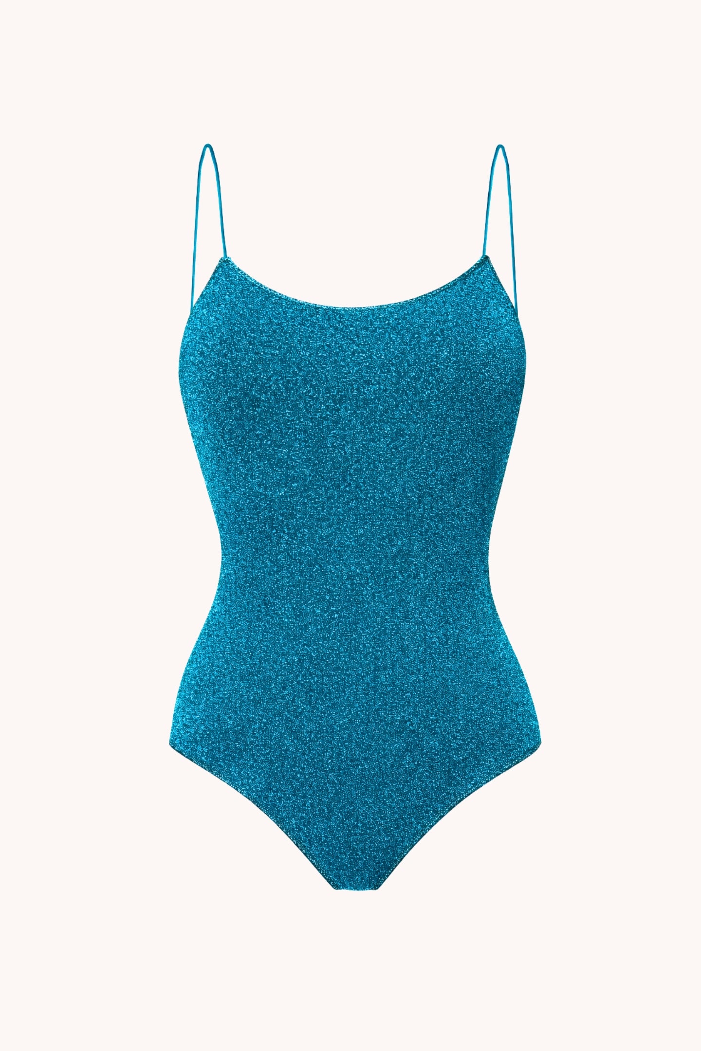 Oséree Elegant one-piece swimsuit/ bodysuit in Ocean Blue, featuring shoulder straps and an evocative back cleavage. Non padded maillot. Crafted in Lurex ®. Made in Italy.